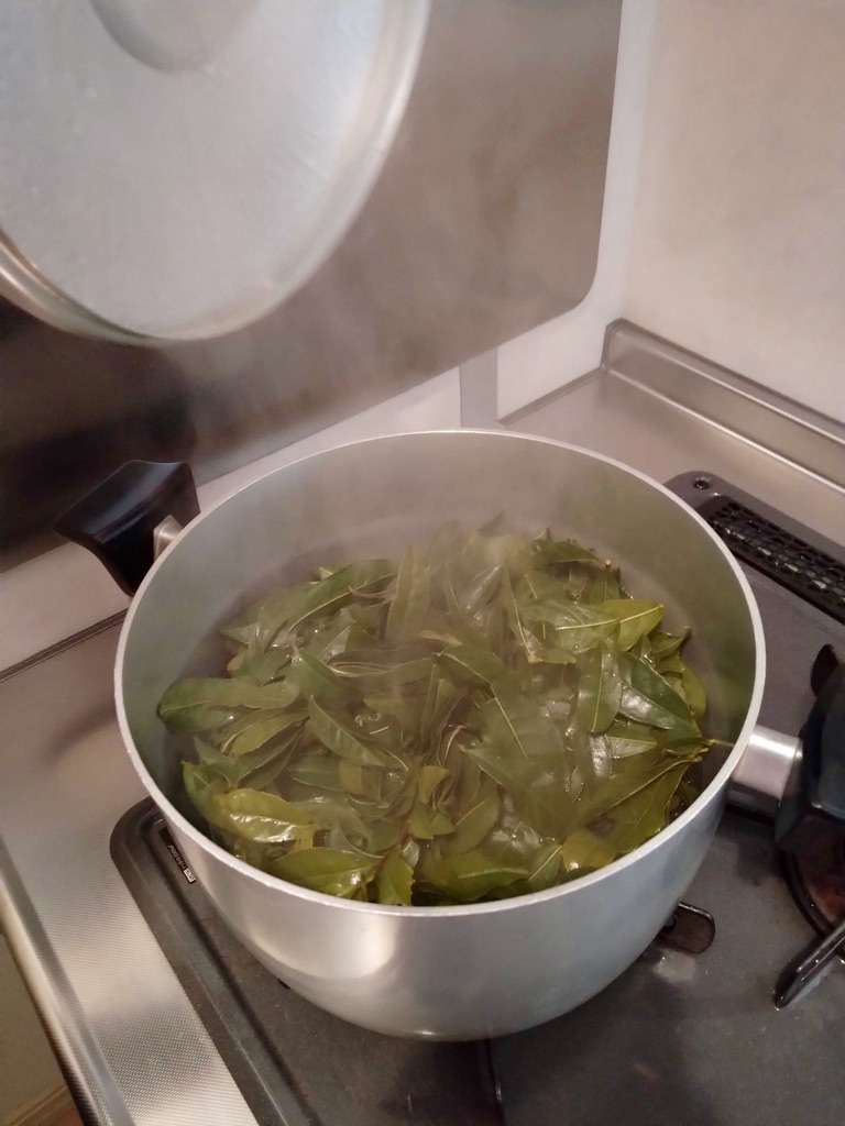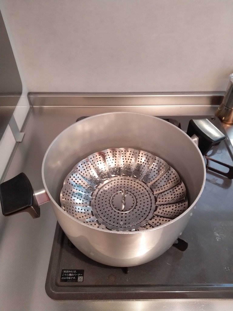 揚げ底の鍋で2−3分蒸して柔らかくします。
