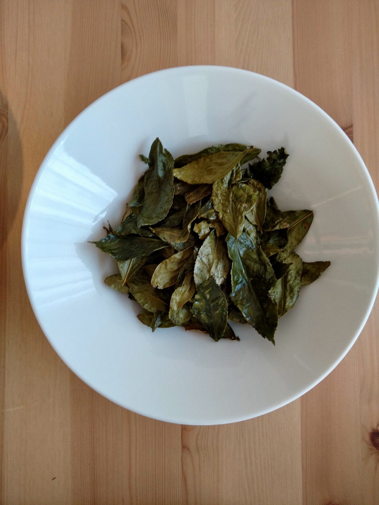 時期的に2月なのでまだ新芽はありませんが、去年の移植より残っている茶葉を収穫しました。