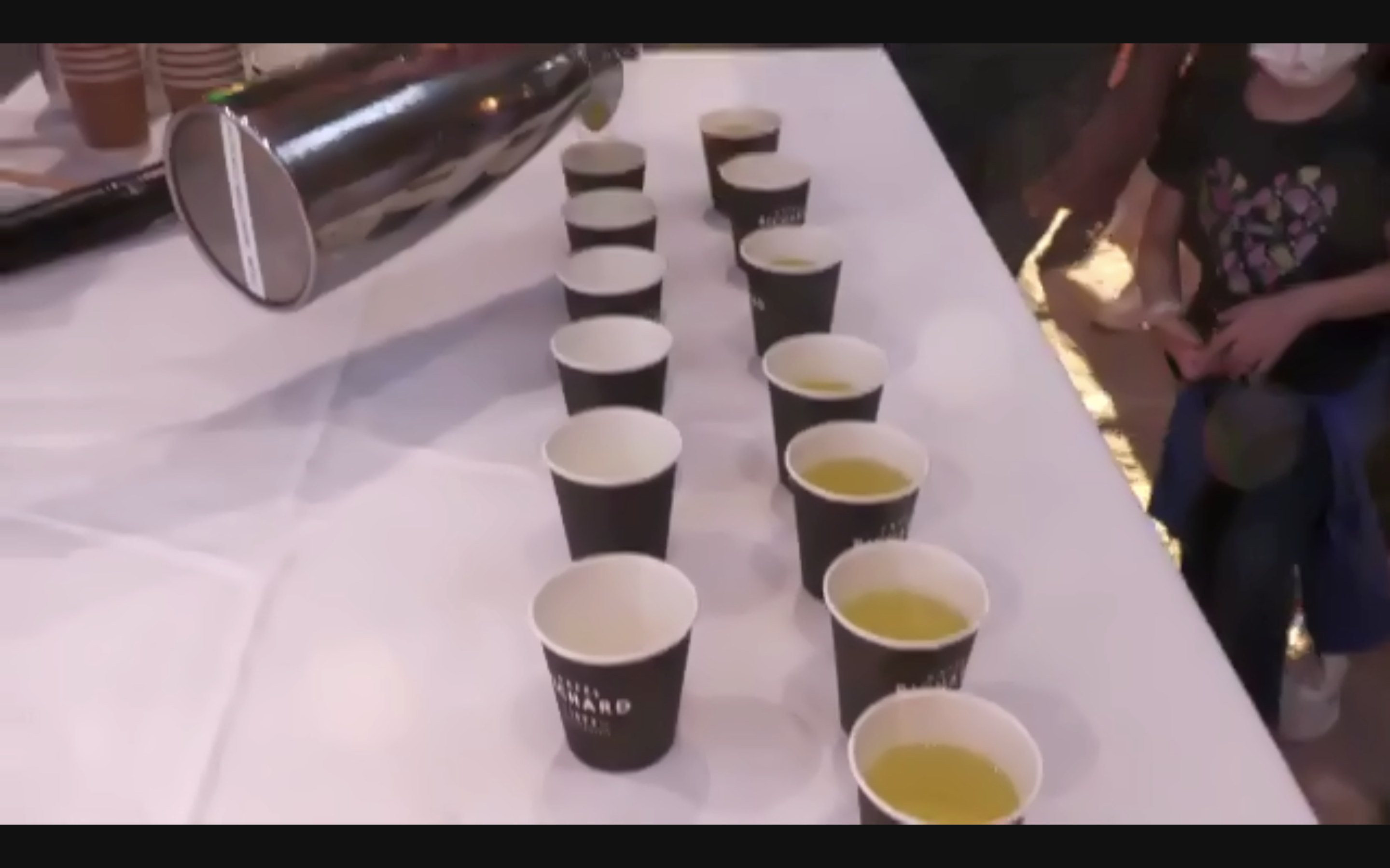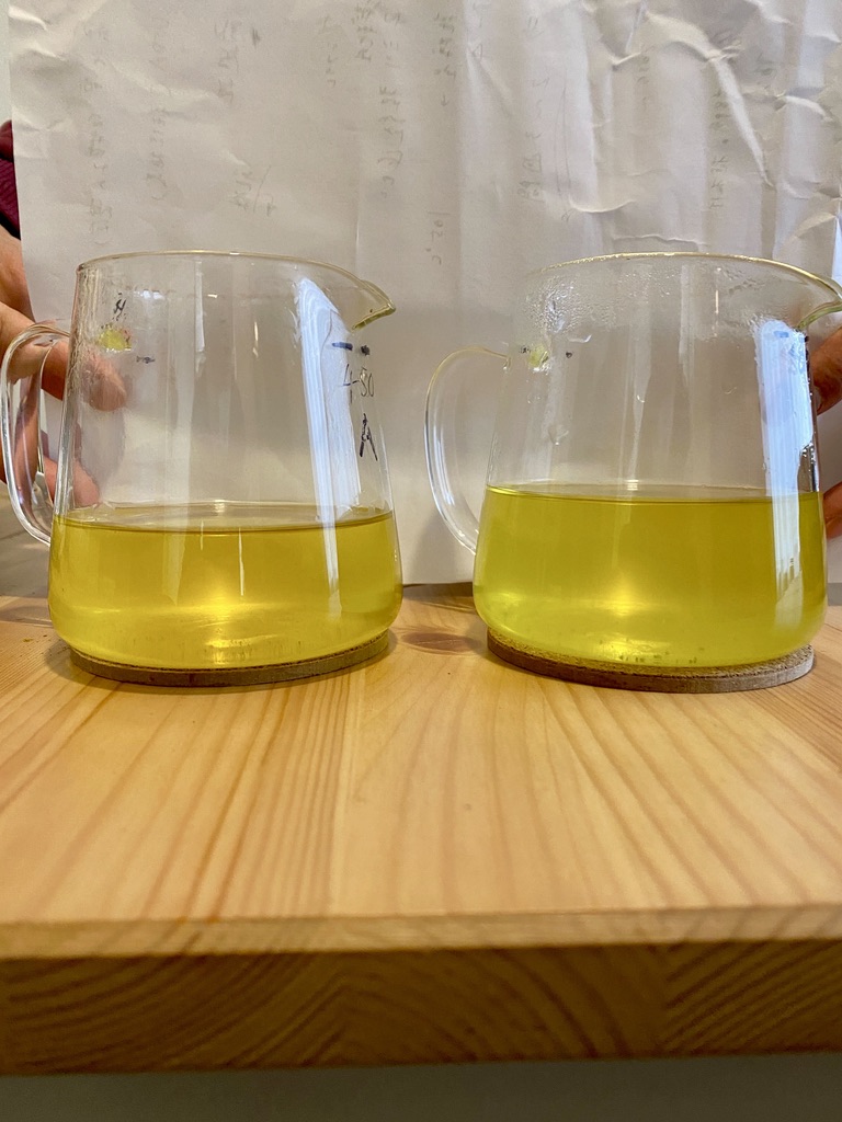 左が伊藤園の慣行のお茶、右が今回作ったシネコ茶です。