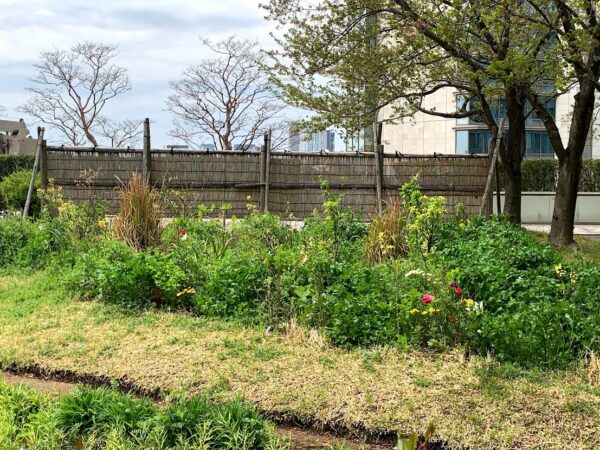 「六本木ヒルズけやき坂コンプレックス」という7階建てのビルの屋上に小さな庭園があります。六本木ヒルズ設立当初からあるその庭園には日本の四季折々を象徴するような木々(さくらやモミジや百日紅)に加え、田んぼや畑などもあります(一般非公開)。その畑で、ソニーコンピュータサイエンス研究所(ソニーCSL)研究員の舩橋真俊さんの研究テーマである「協生農法・拡張生態系」の実証実験が2019年から行われ、今年で4年目を迎えています。(https://www.sonycsl.co.jp/press/prs20191029/)