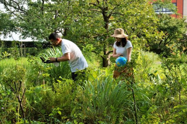 そして、このように拡張生態系をダイナミックに保存(「動態保存」と呼んでいます)しながら、研究を行うための「場」を舩橋さんをはじめとする研究プロジェクトチームに提供、屋上は風も強いことから、機材や各種センサーの常設まではできませんが、土壌やプランターから排出される水の解析などが定期的に行われています。そこからのデータを用いた論文 (論文1 & 論文2) やBook Chapter の発行等にもつながっています。また、ソニーグループ本社R&Dセンター(RDC)によるAR/VR技術を活用した実験も屋上庭園で行われました。なお、六本木ヒルズの屋上庭園を模したレプリカとARデモは今年の3月よりソニーグループ本社のソニースクエアにて展示されています(一般非公開)。