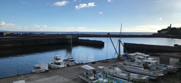 港で釣りをしたり、温泉に入ったり、夜道でゲンジボタルを見たり。