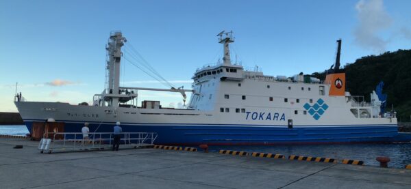 中之島での研究相談が台風10号の影響で延期になったので、翌朝にはフェリーとしま2の臨時便に乗り、調査を継続するために諏訪之瀬島に戻りました。