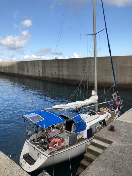エンジンも快調、諏訪之瀬水道の3メートルのうねりを超えて、東寄りの風を受け7ノットで快走し到着しました。