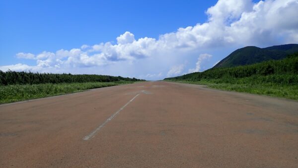 溶岩でできた高台には、ヤマハが作った滑走路。
