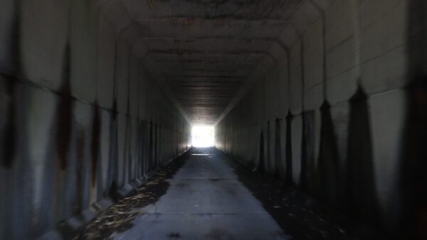 下をくぐる道路があります。集落と東側の切石港をつないでいます。