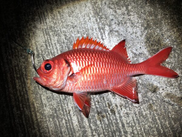 夜釣りではアカマツカサ。山木さんに調理していただき非常に美味でした。