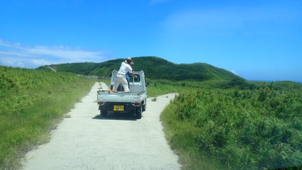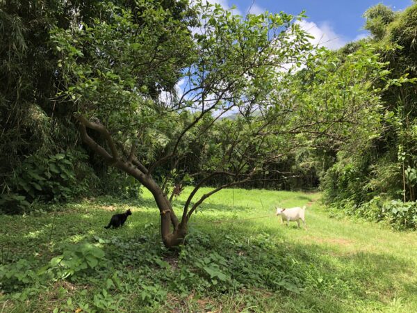台風明けには、集落の方々と野生のヤギとりに出かけました。