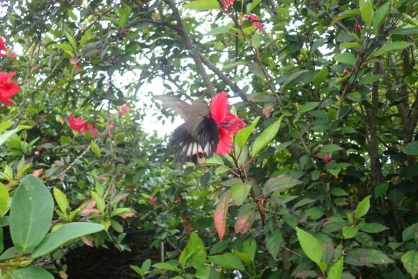 中には小さなビオトープがあり、モンキアゲハが乱舞していました。