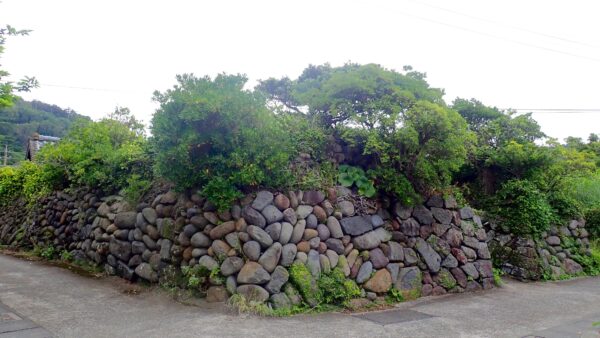 この石垣は他の家には見当たらない構造のようで、台風の風除けなのか、外敵に対する防壁なのか、はっきりわからないとのことでした。