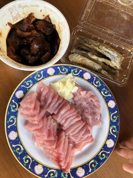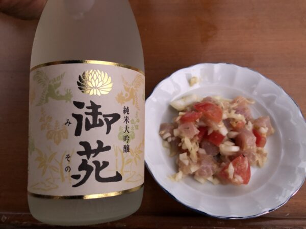 口永良部島でブダイのお礼に頂いた上等な日本酒と、キハダマグロのセビーチェで夕食にしました。