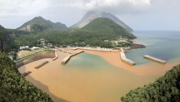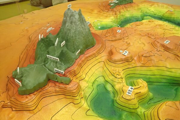 後に鬼界カルデラのジオラマ模型で確認すると、確かに崩壊したカルデラ壁の部分です。