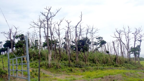 (安永孝さんによると、島の西部の牧場地帯のクロマツ林にはマツクイムシが入って枯れており、それ以外のところのクロマツはあまり枯れていないとのことでした。)