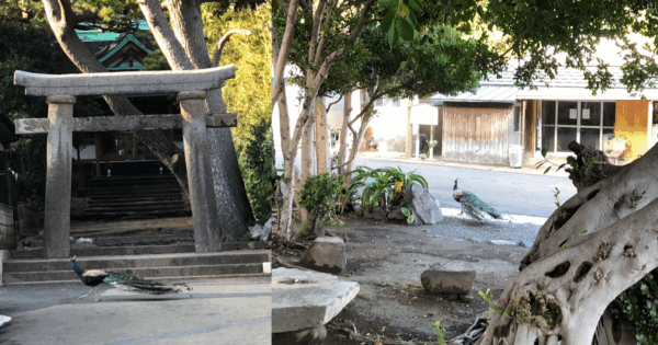 島内の竹藪やツバキ園には、ヤマハが放ったクジャクが生息しています。