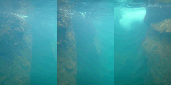 硫黄成分で濁った表層水の下には、より透明な沖からの海水の層がありました。