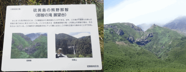 硫黄島には確かに立派な熊野神社があり、東温泉の近くには那智の滝になぞらえた滝もありました。