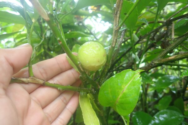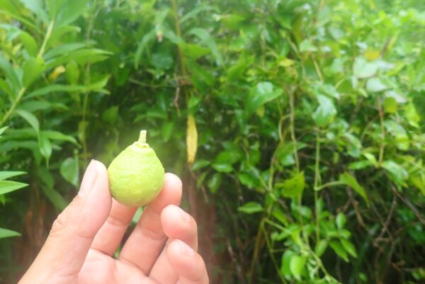 草藪をかき分けること数十メートル、ようやく柑橘系の果樹を見つけ出しました。