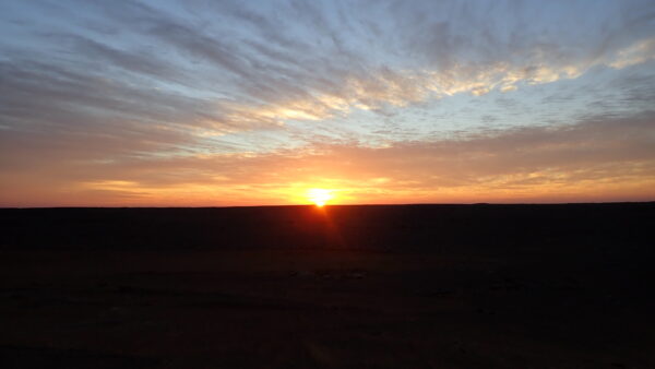 砂漠の闇から、全てに形と色を与える橙色の太陽が昇ります。