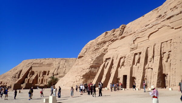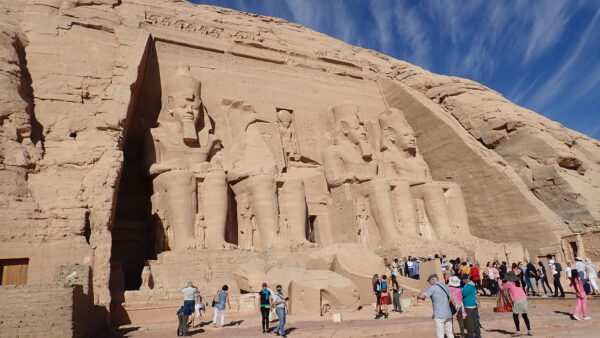 アスワンハイダムの建設に伴って水没するはずだったアブ・シンベル神殿。UNESCOの救済事業で約60m上方に移されて見学することができます。