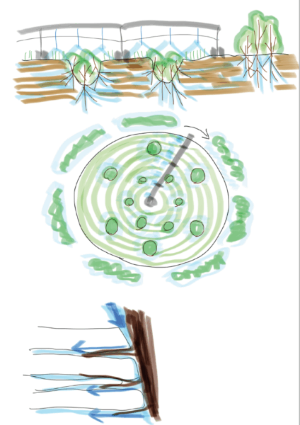New Toshka の研究者たちに、生物多様性を活用した土壌の透水性の改善法を提案しました。アラビア語しか通じなかった為、以下のスケッチを残してきました。