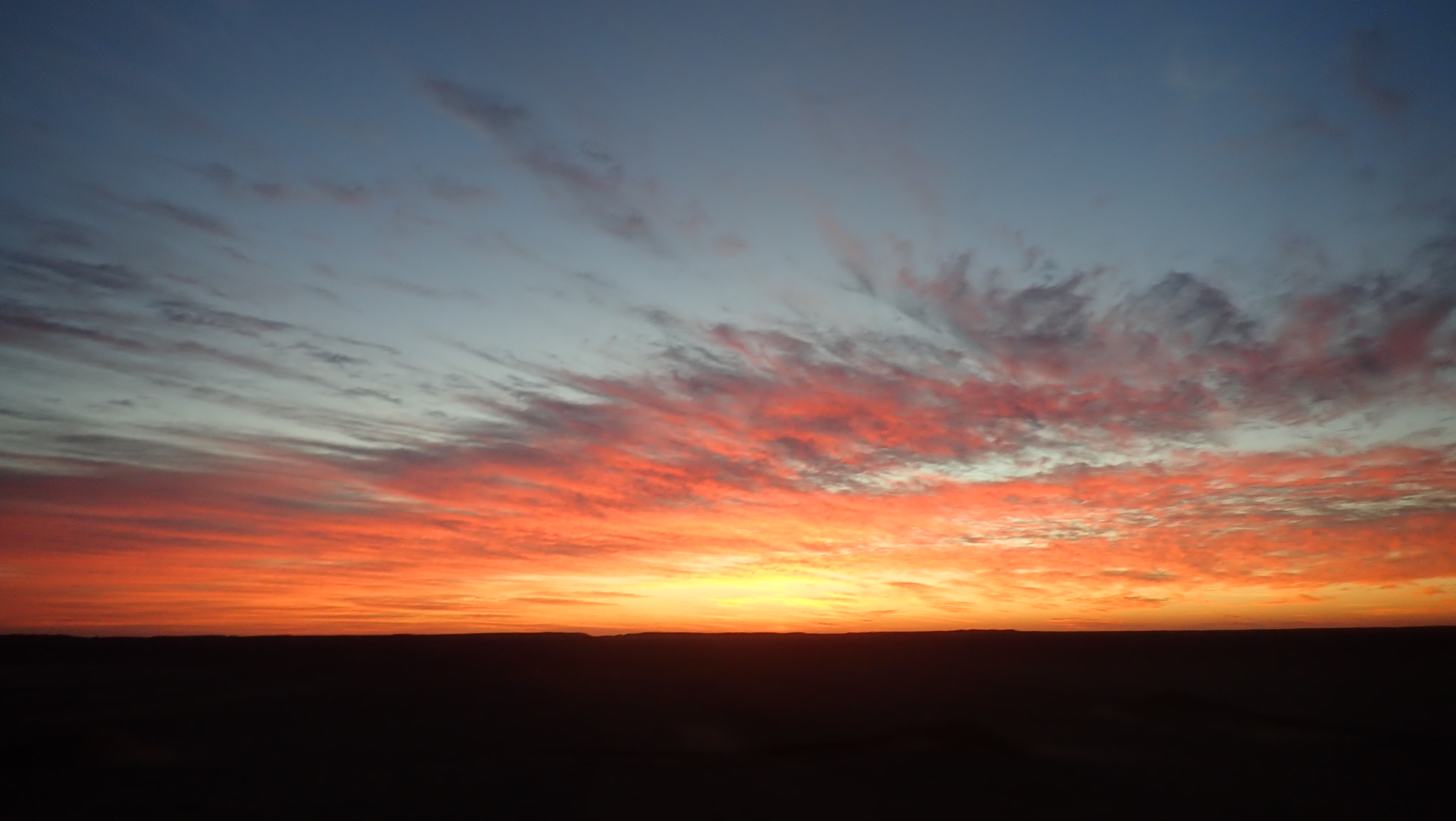 砂漠の闇から、全てに形と色を与える橙色の太陽が昇ります。