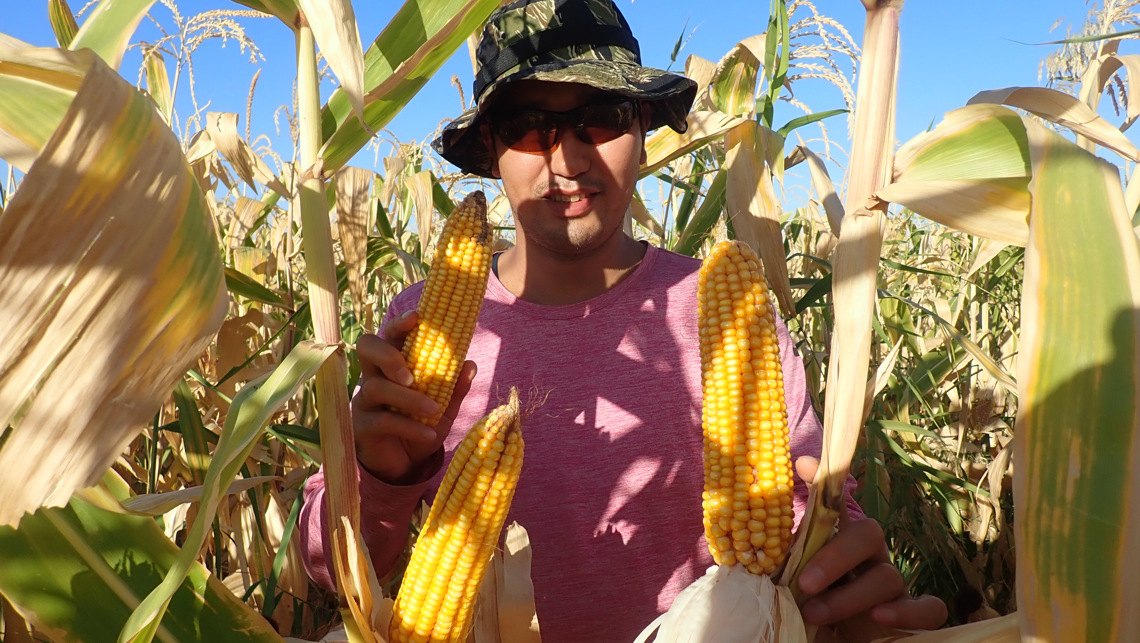 ・2018年現在、1000acresの土地にて67機の大型水撒き機(irrigation system)で4種の作物(トウモロコシ、ヒマワリ、サフラン、アルファルファ)を栽培中。