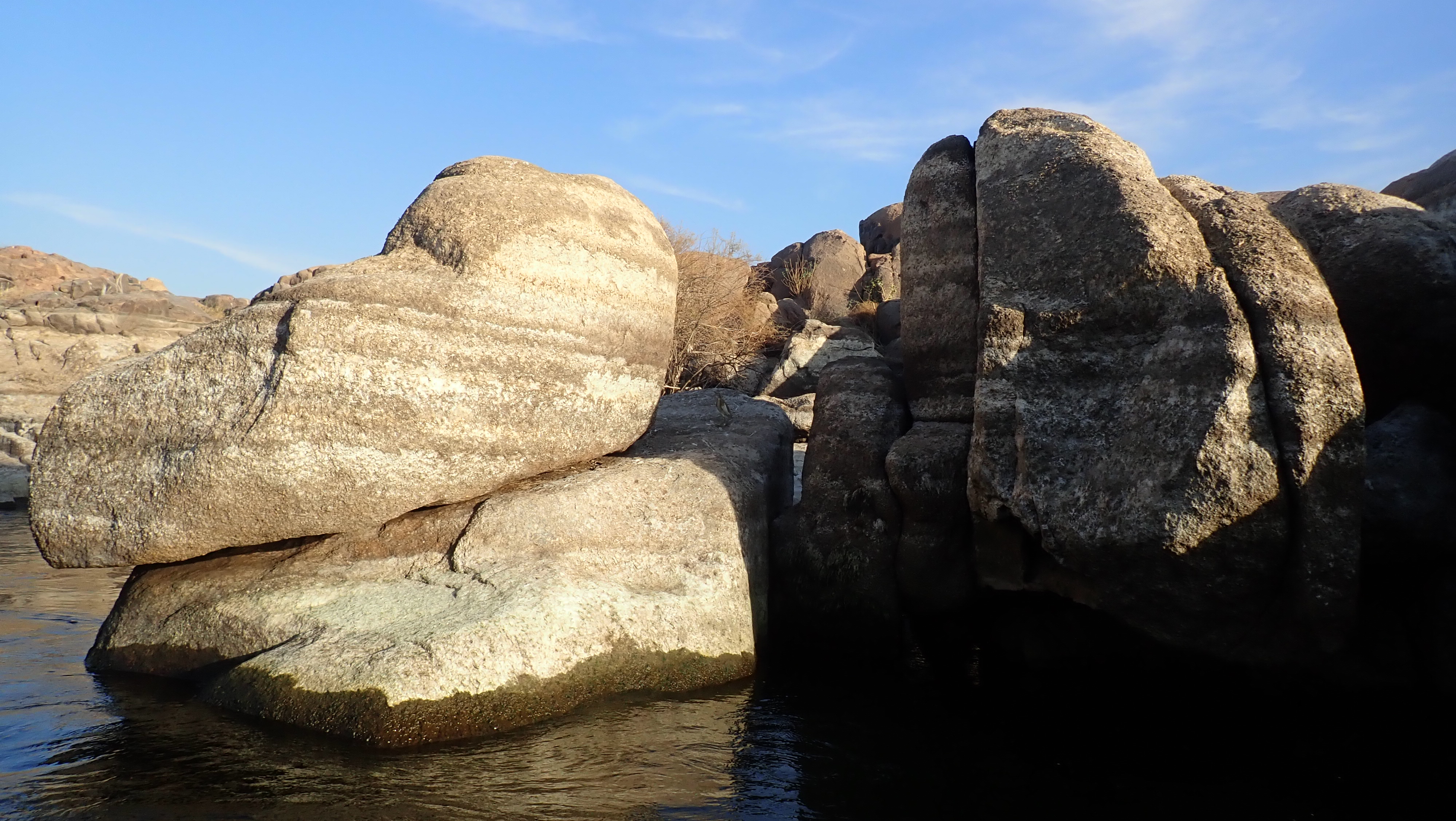 現在のナイルは、川沿いの薄いライン状にしか植生がありません。数メートルから数十メートル内陸に入ればすぐに岩石とサラサラな砂の砂漠になってしまいます。過去の文献や壁画などの記述は残っていないようですが、地質学的にはファラオ時代もこのような乾燥した気候であったことがわかっています。