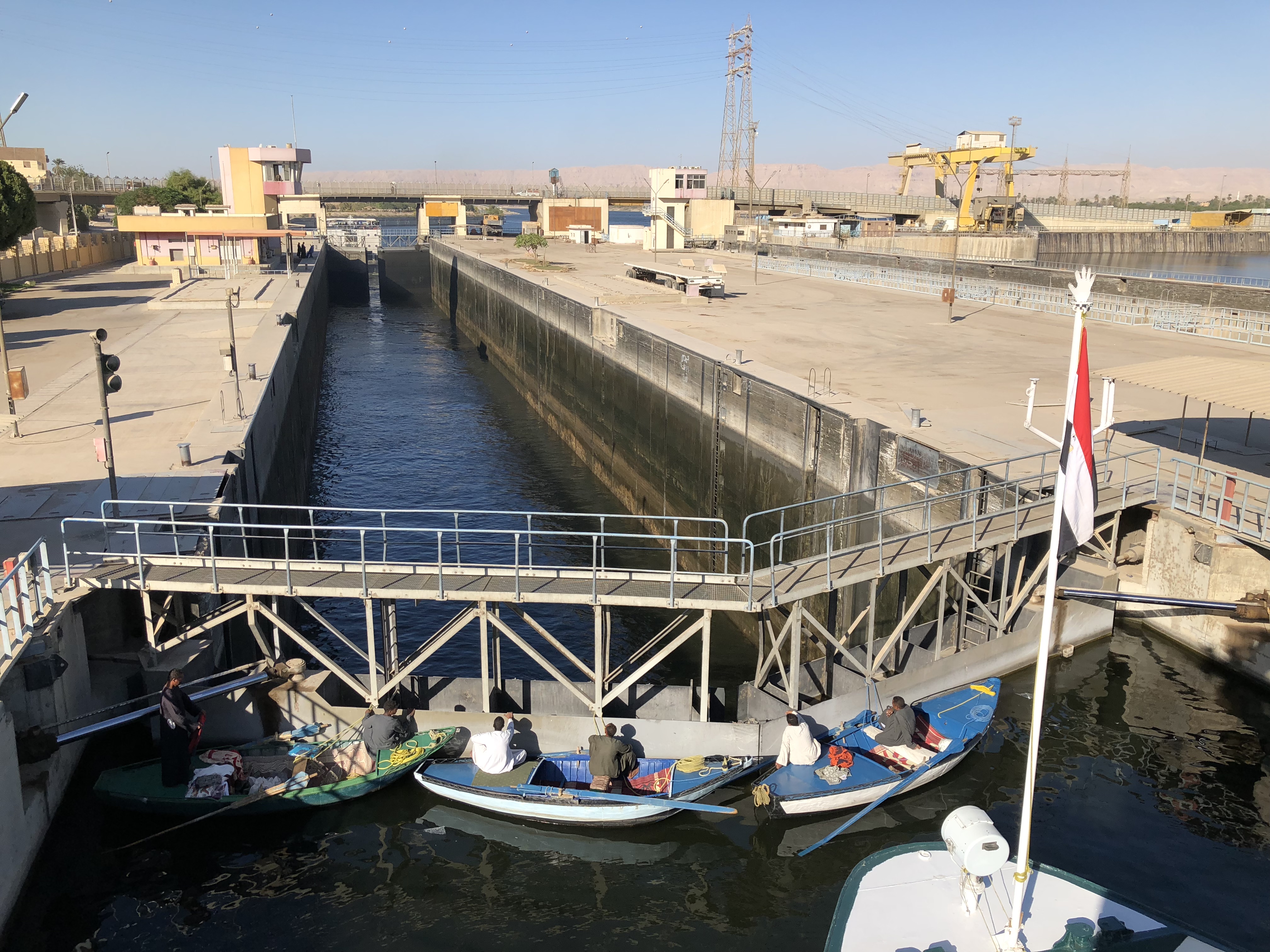 船はEsnaのクラッチ(段差式水門)を越え、Luxorに向かいます。