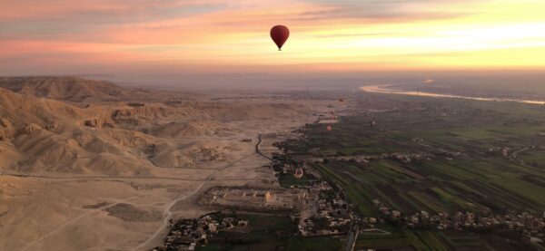 最終日の朝は、気球に乗って大空へ。Luxorを上から眺めます。