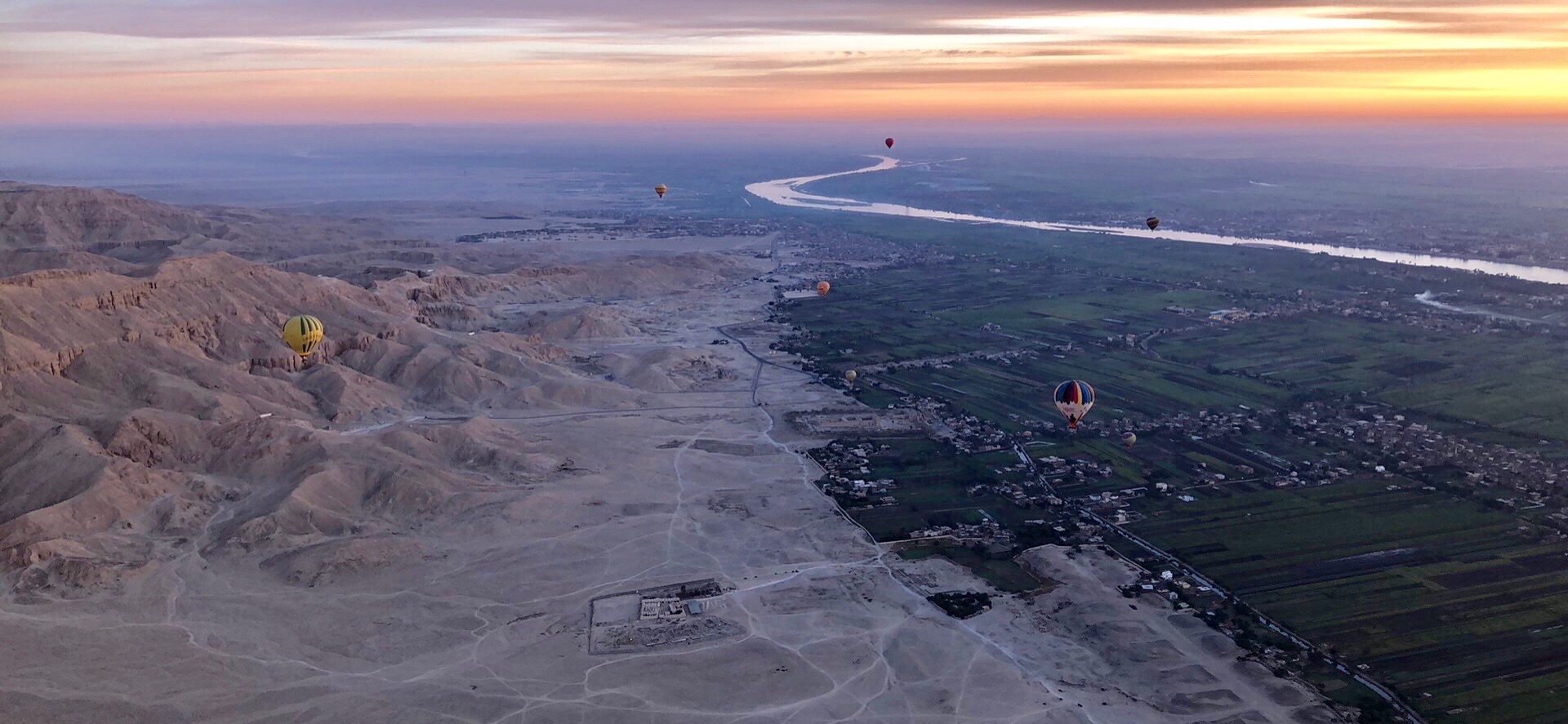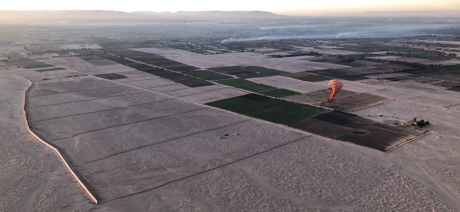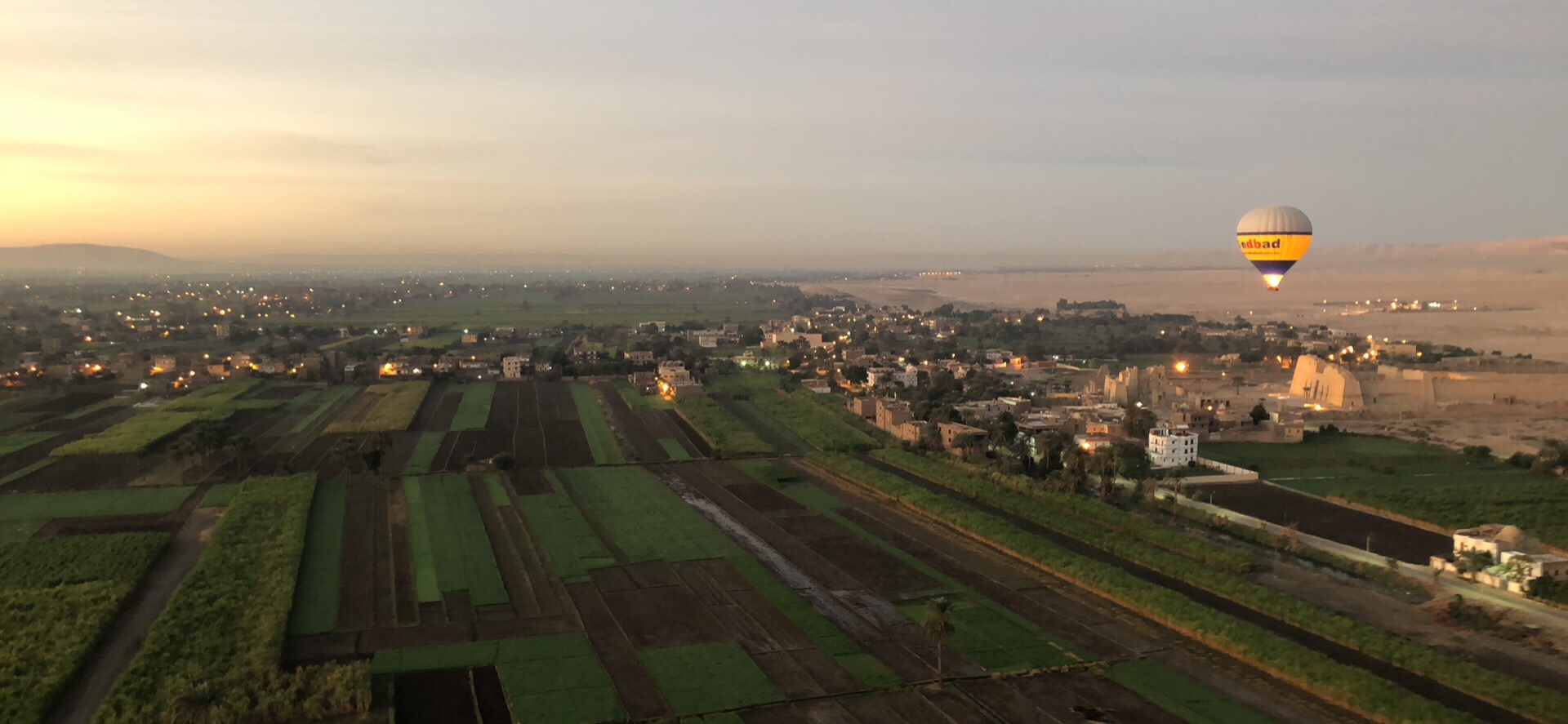 最終日の朝は、気球に乗って大空へ。Luxorを上から眺めます。