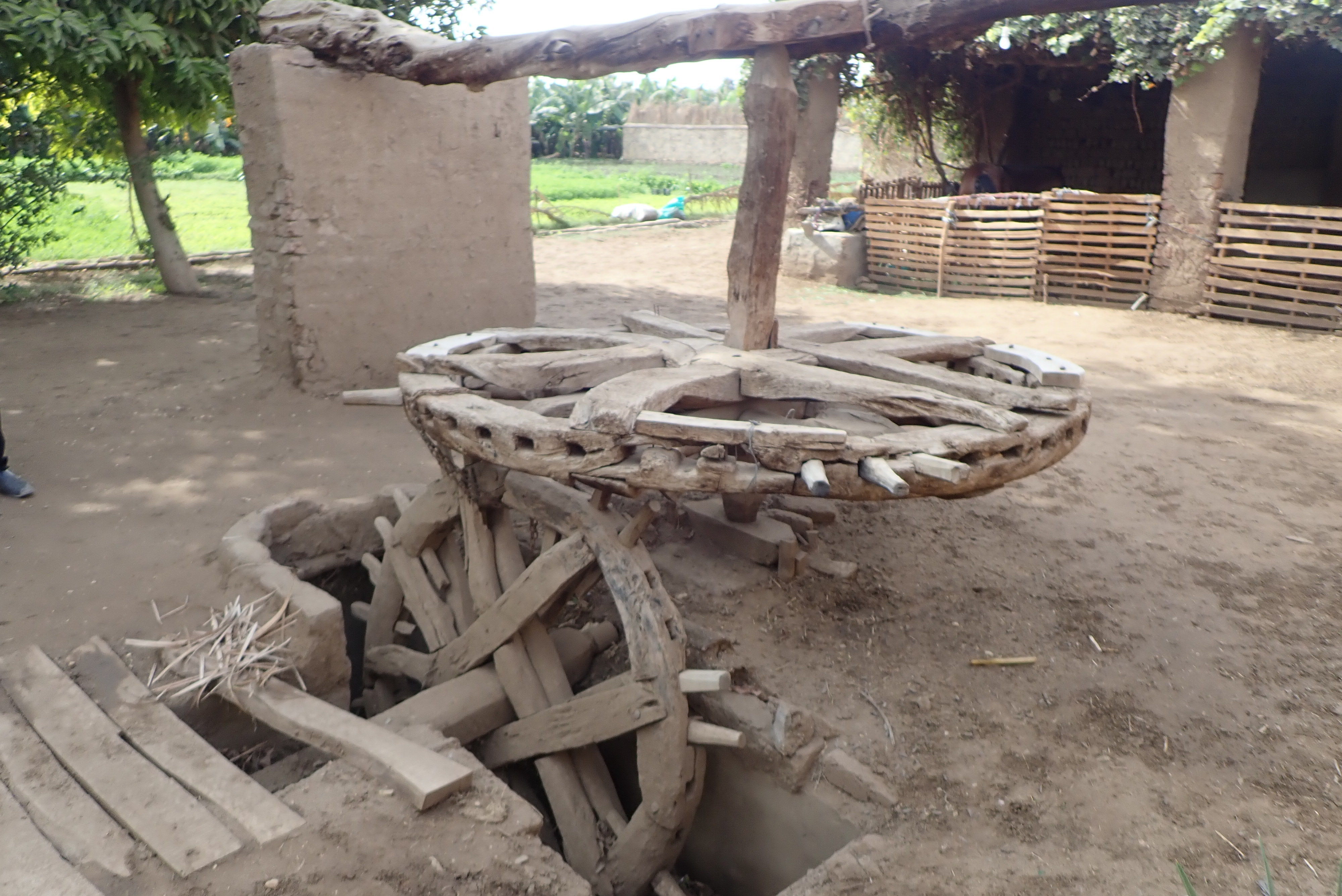 昔使っていた、家畜や人などの力だけで動かせる水車式の灌漑装置。