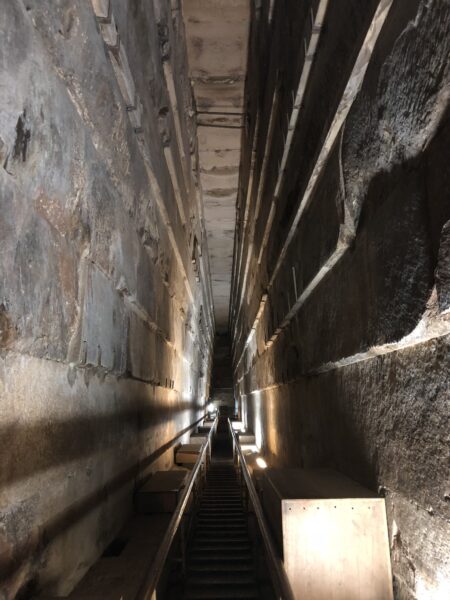 エジプトの法律で、内部では一切の宗教的行為は禁止ですが、北欧系の気功グループと思われる集団が香を焚いて呼吸瞑想体操のようなことをしていました。ピラミッドパワーにあやかるためでしょうか。