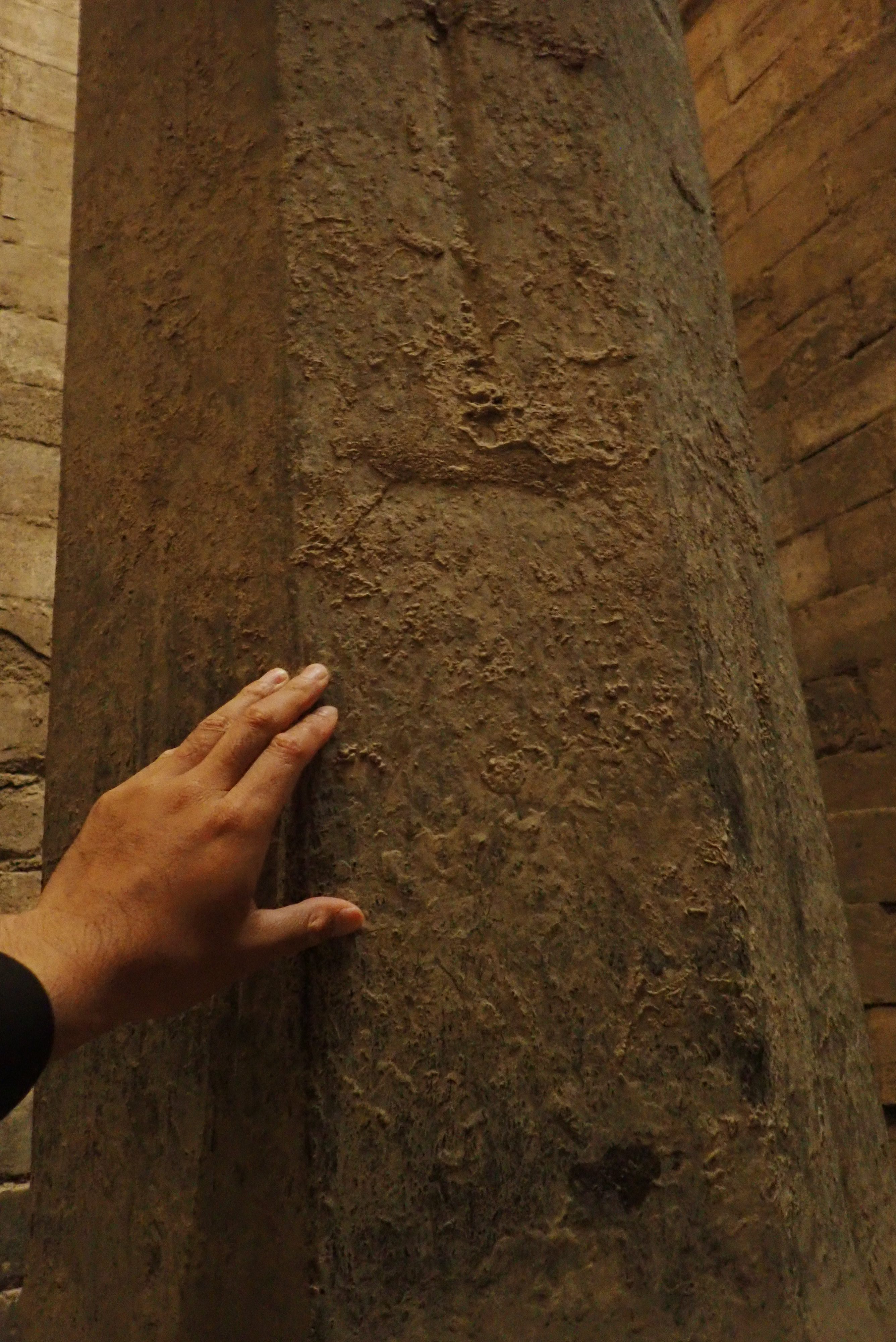 柱の最深部には、昔ナイルの水が入って来たときに付着した泥が残っていました。