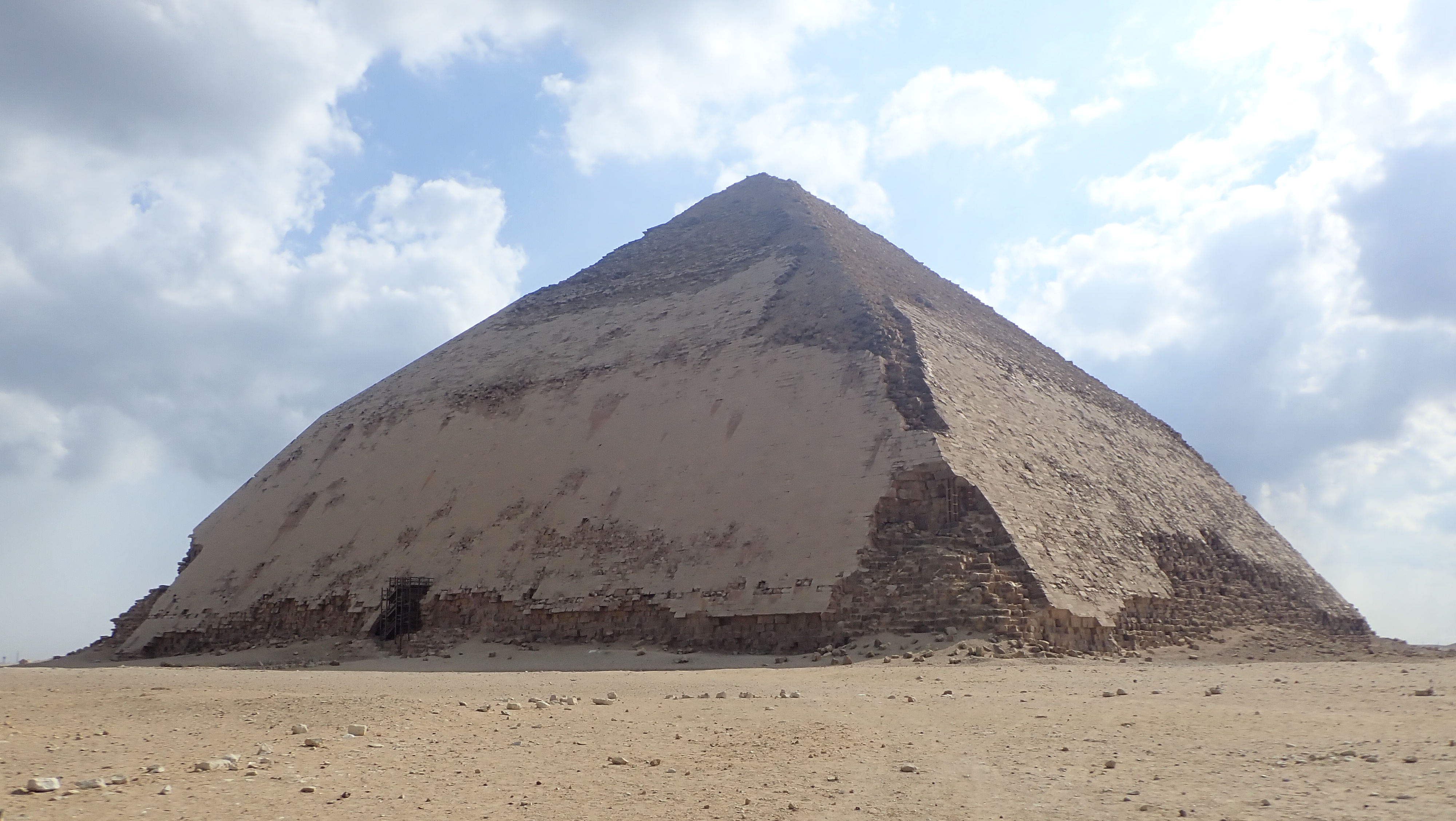 二段傾斜のある屈折ピラミッドが有名です。他のピラミッドの角度との比較から、最初の傾斜が急すぎて設計変更したと言われています。