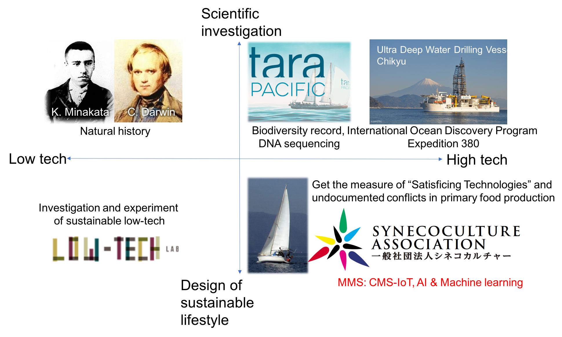 小さなヨットを持続可能な技術の実験場にして、多様な生態系と社会の間でサバイバルしながら研究航海を行う。 方向性が見えてきたところで、他の団体の取り組みにも目を向けました。 私が兼任するJAMSTECでは、地球深部探査船「…