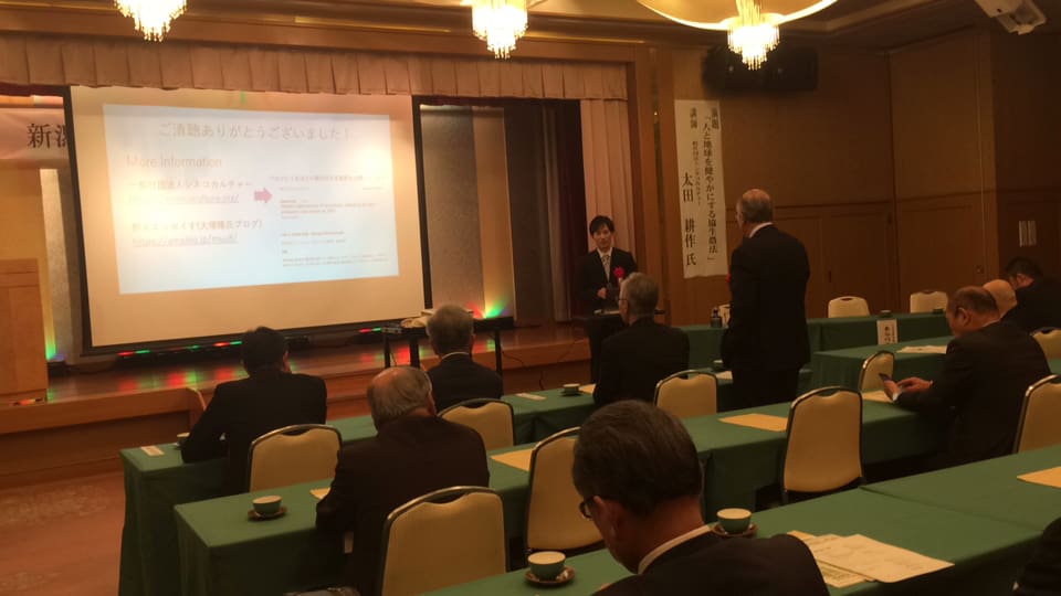 当法人の講師・太田耕作が11月12日に新潟県の三条市において開催された「新潟商工中金会 三条部会 例会」で協生農法について講演しました。昨年、協生農法の原型創案者の大塚さんが講演された会です。 前回の三条市においての講演…