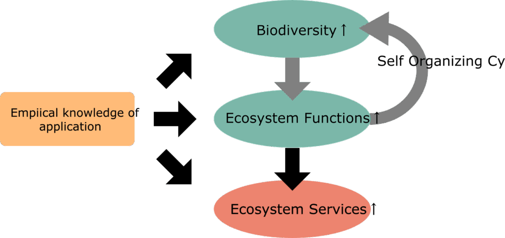 Maximum biodiversity can be established by managing Synecoculture farm so that these three indicators improve simultaneously. As a result, Synecoculture is expected to restore and augment the biodiversity in both natural and urban environment.