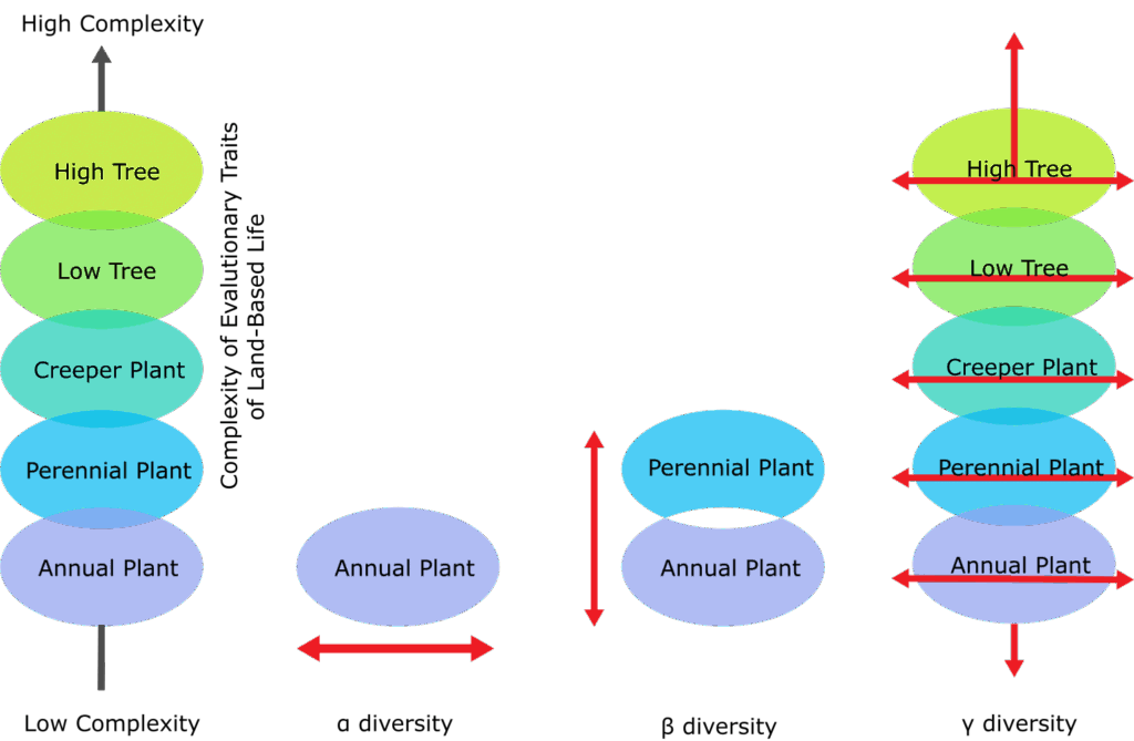 For example, if there are two ecosystems with the same number of γ Diversity of 500 species, one could have less α Diversity in a stage than others, and another could have a partially lower β Diversity in vegetation. Thus, it is essential to diversify vegetation from both micro and macro perspectives.