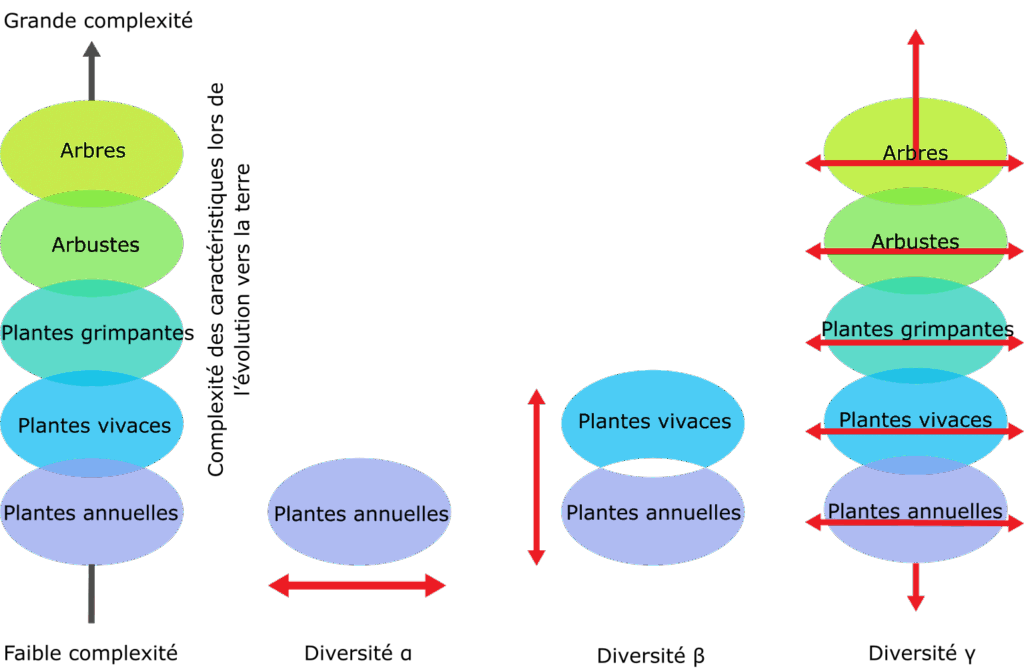 Diversité α : Diversité des espèces à une étape de végétation. Ex : Diversité des espèces des plantes annuelles.
