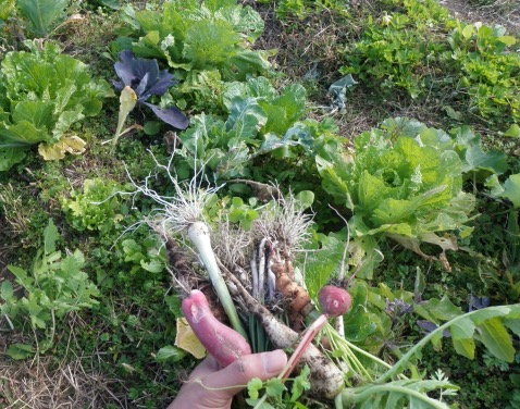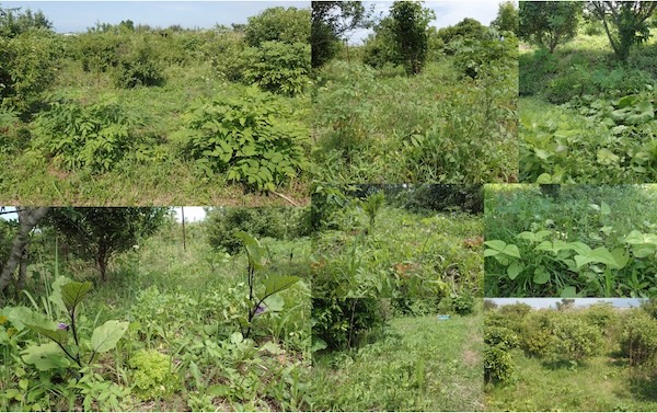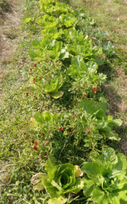 夏の草刈りと並行して、秋以降種からの野菜が混生密生し翌春まで間引き収穫できるように、種蒔きと苗の植え付けを計画する。