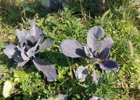 ヨモギと紫キャベツの混生。ヨモギを別の野菜で置き換えることもできるし、ヨモギを使って土壌構造を構築してもよい。