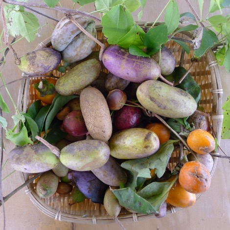 周囲生態系の木の実などの産物も、シネコカルチャーでは積極的に活用する。 その地域の生態系を総合的に知り活用することがシネコカルチャー農園をマネージメントする上で本質的に重要である。