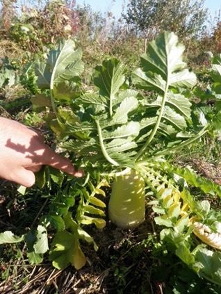 自家採種と同じように、勝手に種が飛んでできた大根は生長が著しく早い。